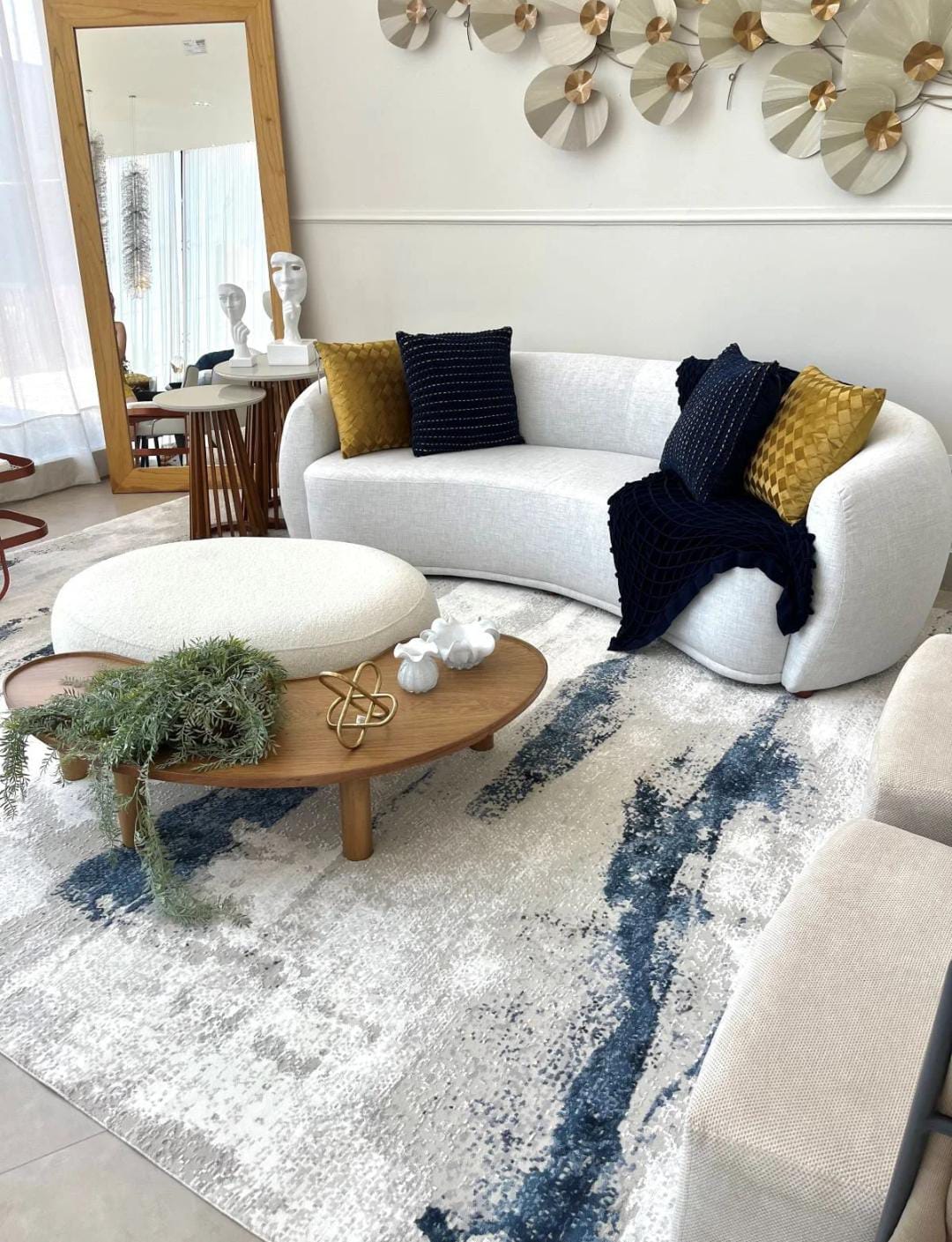 Inspirado no movimento das ondas, o Tapete Copacabana une tons claros e azuis intensos em um desenho que transmite fluidez e modernidade. Sua estética lembra a orla icônica que inspira elegância e frescor, trazendo leveza para o ambiente.